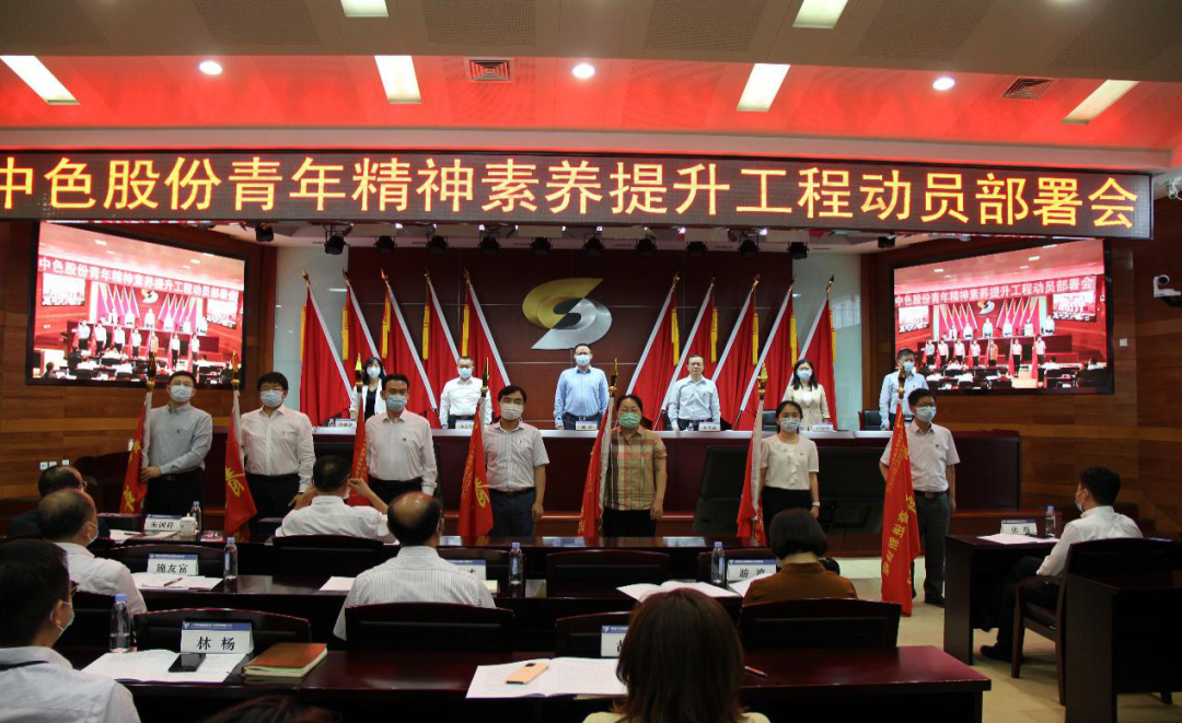 圖丨中色股份召開青年精神素養提升工程動員部署會,為7支青年突擊隊授旗,推動青年崗位建功