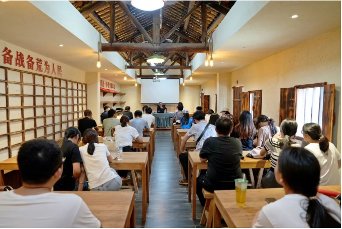 集中學習后,團員青年們前往富川坪江村的知青文化園,體驗上世紀五十年代的知青生活,感受那段在艱難中磨礪、在苦難中奮進的無悔青春。在知青書吧,黃日雙為大家講解平桂知青的故事,詳細介紹了知青上山下鄉(xiāng)的事跡,鼓勵團員青年學習他們不怕困難,擔當作為的可貴精神。李興軍向團員青年講述了《習近平與大學生朋友們》中的精彩故事,傳達了習總書記對當代青年寄予的深切厚望與殷殷囑托。