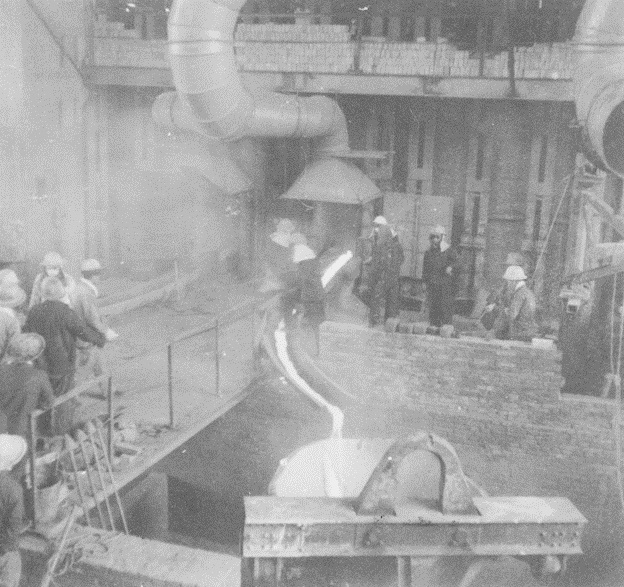 1960年4月6日,中色大冶迎來(lái)了第一代爐——反射爐點(diǎn)火的神圣時(shí)刻;4月22日下午2點(diǎn),第一包冰銅放滿;4月23日,冶煉廠反射爐順利放出第一爐冰銅。