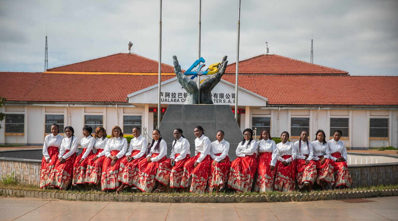 在“三八”國際勞動婦女節之際,中國有色集團在剛果(金)出資企業盧阿拉巴銅冶煉股份有限公司(簡稱:中色盧阿拉巴)近40名中剛方女同胞身穿中國傳統服飾“馬面裙”在花草間拍照、合影留念,在非洲大地邂逅“馬面裙”,共同慶祝節日。