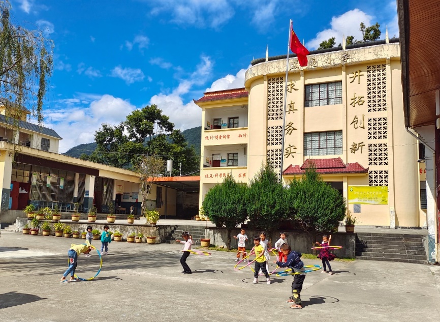 從梁河縣城到小廠鄉勐竜村,一路云霧繚繞、百轉千回,這座“世外桃源”地處高寒深山、交通閉塞。勐竜小學校長楊明浩向我們介紹到:“因勐竜村較為偏遠、相對獨立,這所小學能夠覆蓋到的學生并不算多,但這是村里孩子能接受教育的唯一窗口?!?004年,中國有色集團為勐竜小學幫扶建設了教學樓,這也是公司在梁河幫扶建設的第一座教學樓,而援建標識牌上記錄的還是公司時用名“中國有色建設集團有限公司”。變的是稱謂,不變的是傾情幫扶,五年后的2010年中國有色集團再次捐資幫助購買教學設備,十年后的2014年繼續幫扶建成了學生宿舍和圍墻。
