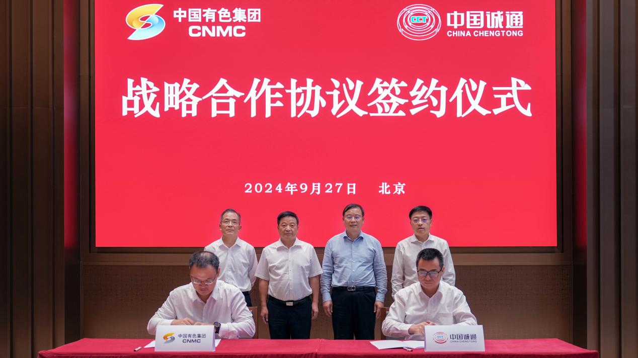 9月27日,中國(guó)有色集團(tuán)與中國(guó)誠(chéng)通在京簽署戰(zhàn)略合作協(xié)議。中國(guó)有色集團(tuán)黨委書(shū)記、董事長(zhǎng)文崗,黨委副書(shū)記、總經(jīng)理張晉軍;中國(guó)誠(chéng)通黨委書(shū)記、董事長(zhǎng)奚正平,黨委副書(shū)記、總經(jīng)理郭祥玉現(xiàn)場(chǎng)見(jiàn)證簽約。中國(guó)誠(chéng)通黨委副書(shū)記、總經(jīng)理郭祥玉主持簽約儀式,中國(guó)有色集團(tuán)黨委委員、副總經(jīng)理劉宇和中國(guó)誠(chéng)通黨委委員、副總經(jīng)理童來(lái)明代表雙方簽約。