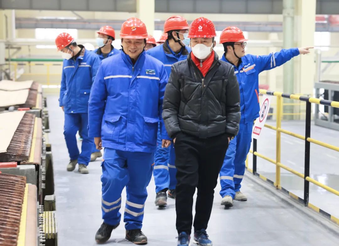 ????在弘盛銅業,王焱、胡國斌一行先后前往智慧中心、電解片區槽面、智能銅庫、精煉、吹煉、熔煉主廠房,看望慰問基層一線在崗職工,與當班員工親切握手,詳細了解生產運行、智能工廠建設、值班值守以及職工生活等情況。王焱強調,2023年是貫徹落實黨的二十大精神開局之年,在重點工作上要凸顯責任擔當。班子要統籌規劃,保持生產態勢不斷向好,鼓舞廣大干部職工在新的一年,以昂揚姿態走好團結奮斗之路,不斷建功立業,實現綠色高質量發展。同時叮囑在場人員要緊繃安全生產弦,嚴格按標準化操作,確保生產穩步運行。