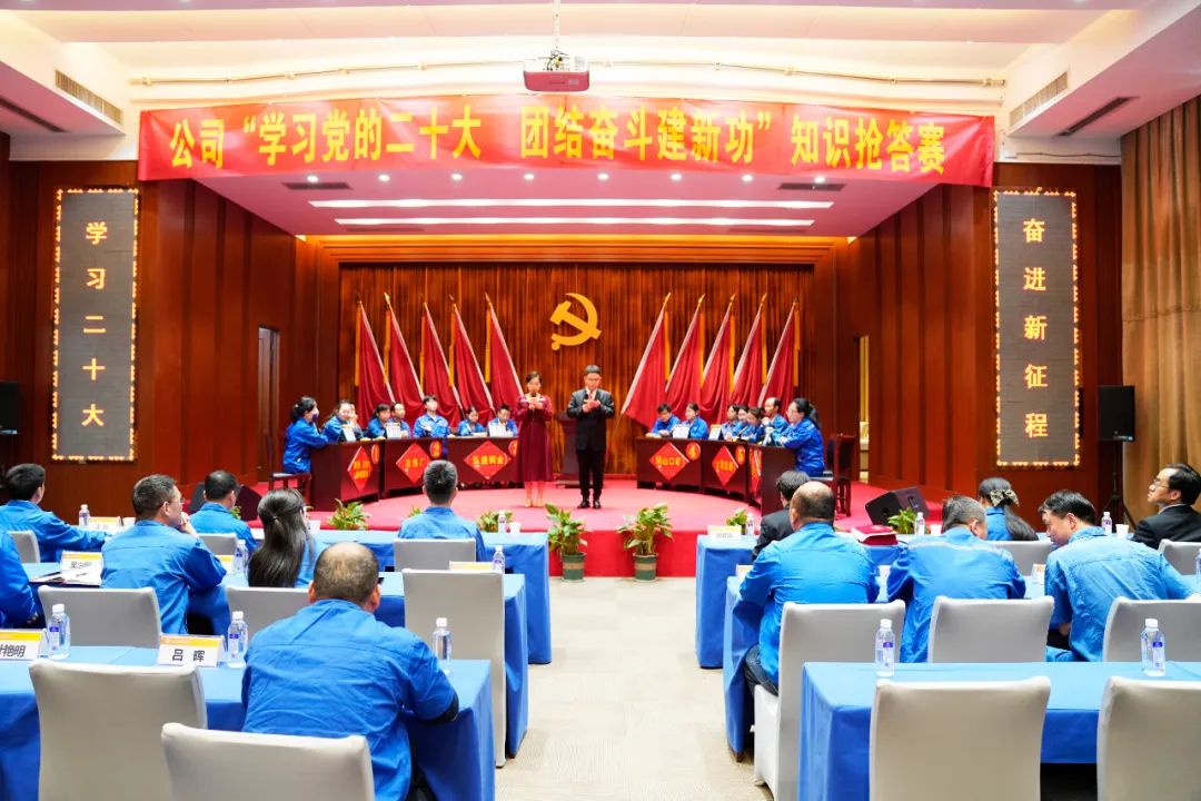 ????此次知識競賽設置了必答題、搶答題、風險題、開放題四個環節,競賽內容涉及習近平總書記系列重要講話、黨的二十大報告、黨章、公司年度報告、企業文化等相關知識,旨在堅持用習近平新時代中國特色社會主義思想武裝廣大黨員干部職工,不斷重溫習近平總書記對集團公司的三次重要指示批示精神,團結凝聚廣大職工自覺把黨的二十大提出的新思想新論斷、確定的新部署新要求轉化為推動公司“六大躍升”、實現“六個增效”的實際行動。? ? ? ?經過預賽緊張激烈的角逐,有6支代表隊共18名選手脫穎而出,進入決賽。